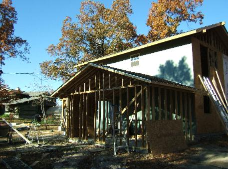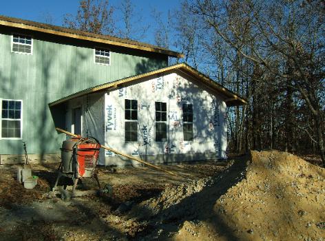 | The door and windows are installed and house wrap applied to the sides. Next will be the siding. |