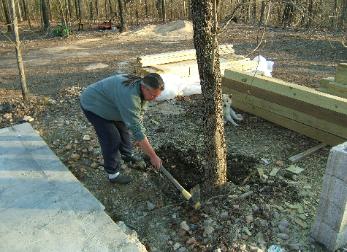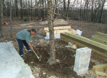 As much as we hated to remove this large dogwood tree, it was where the greenhouse supposed to go. It took Peggy several days to dig it up. |